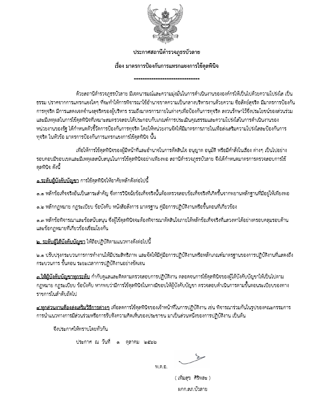 มาตรการป้องกันการแทรกแซงการใช้ดุลพินิจ 5 กุมภาพันธ์ 2567 โดย admbualai / ไม่มีหมวดหมู่ Facebook iconFacebookTwitter iconTwitterLINE iconLine